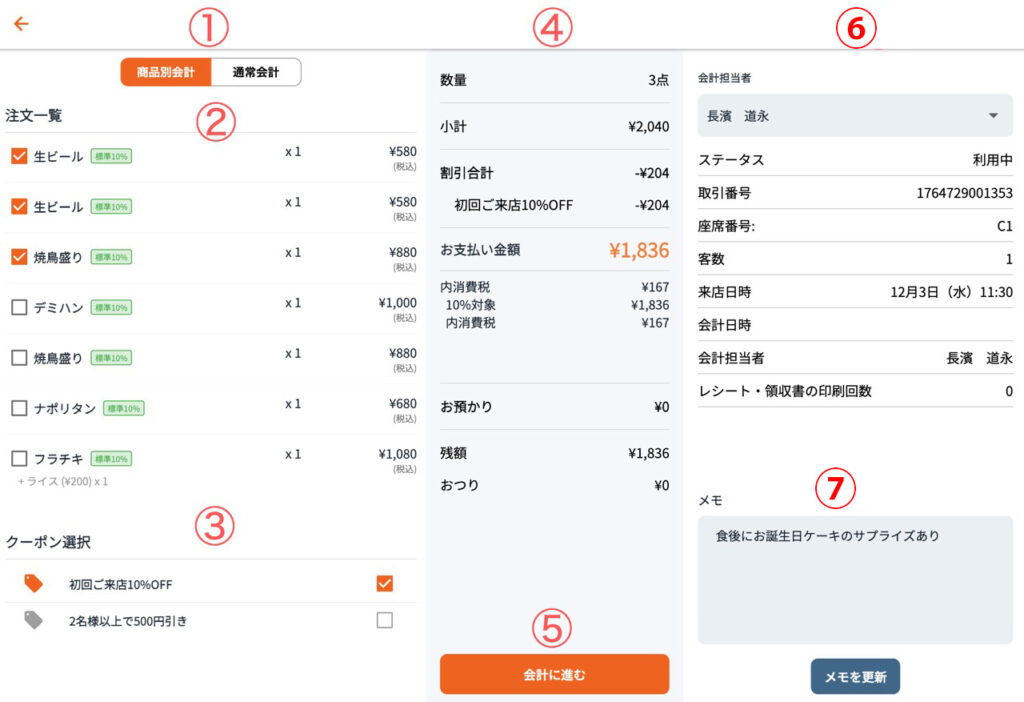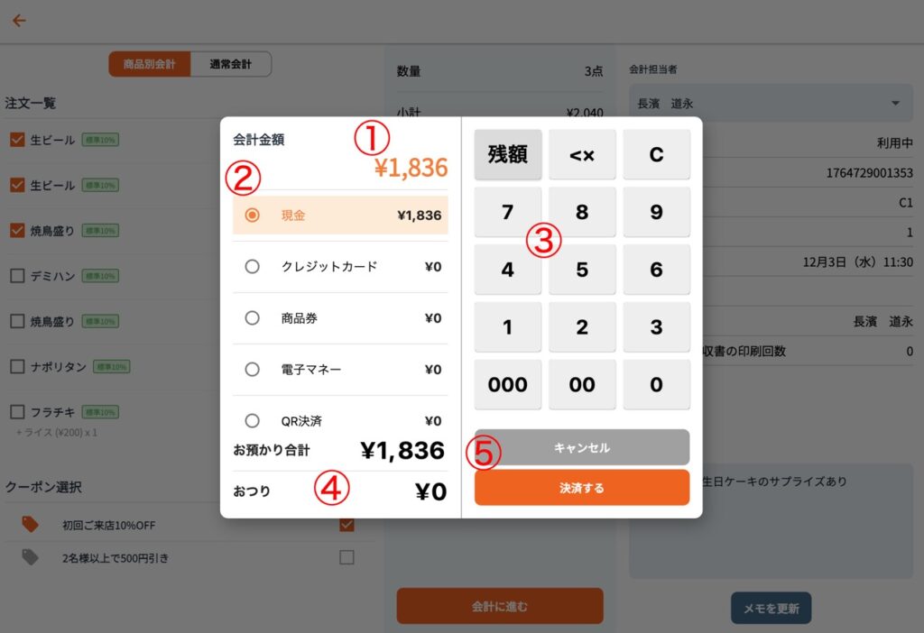 2残りの注文を会計する