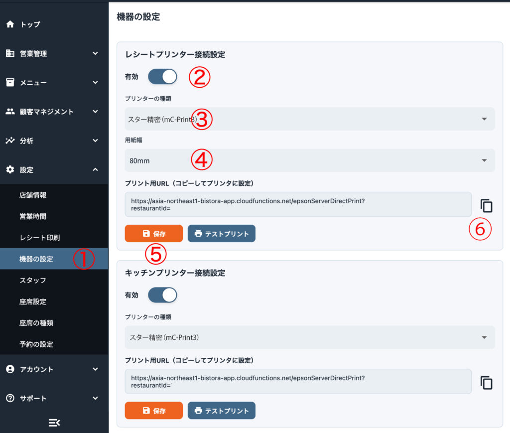 Bistoraの管理画面からプリンタを設定する