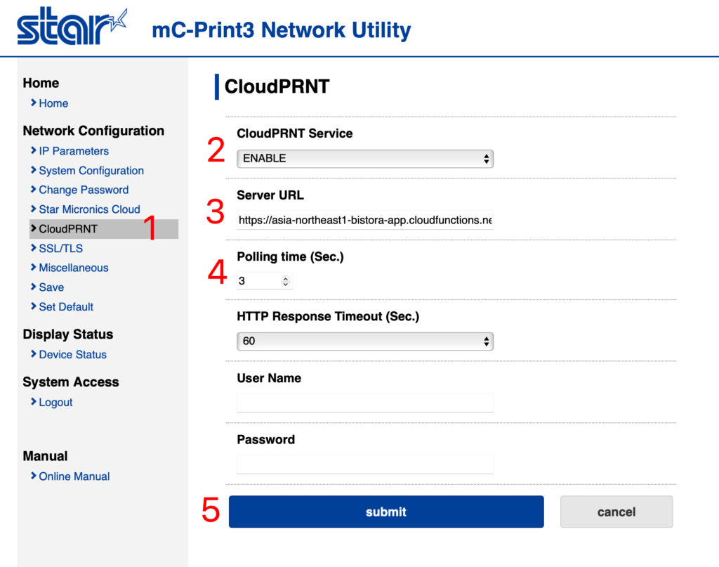 2.CloudPRNT Service:ENABLE