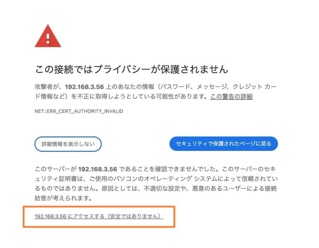 『192.168.X.Xにアクセスする(安全ではありません)』をタップします。