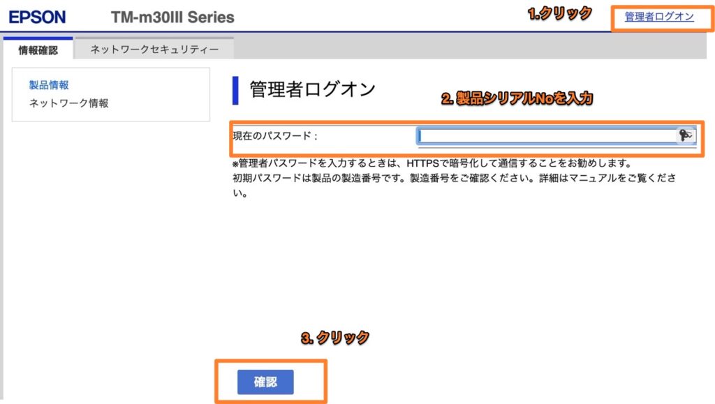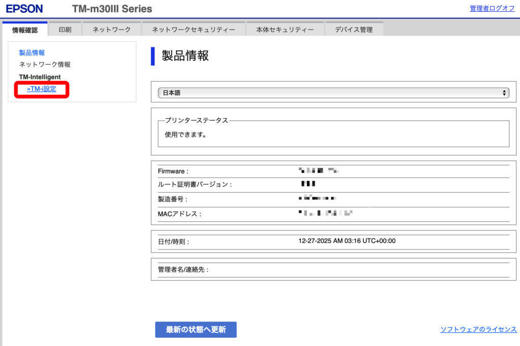 TM-m30シリーズであれば設定方法はほとんど同じですが、ここではTM-m30Ⅲを例にとって説明します。