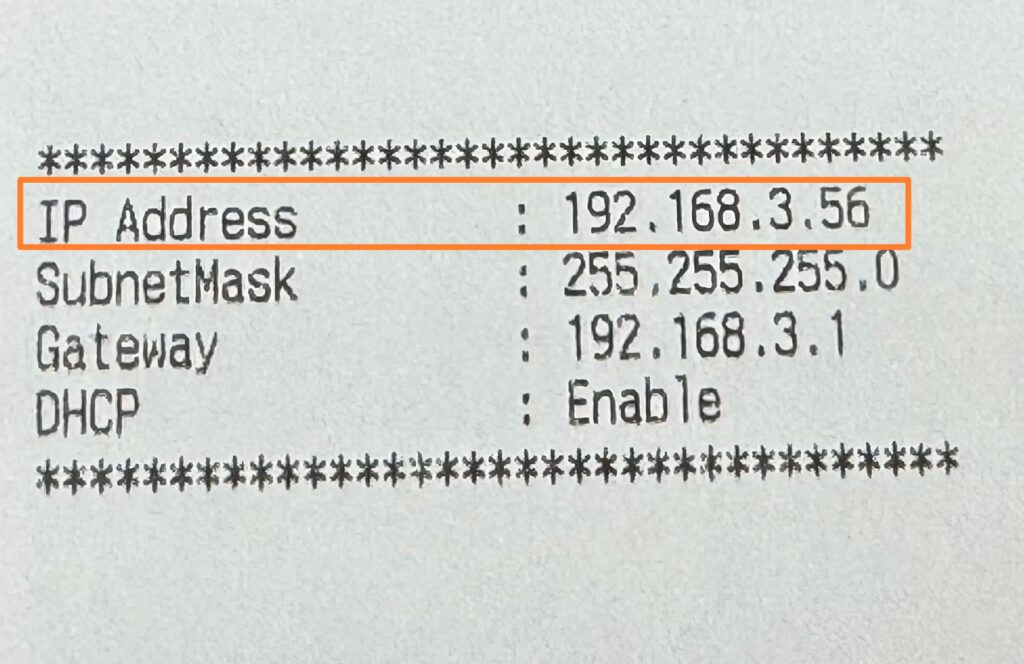 ONにするとプリンターから画像のようなレシートが印字されます。