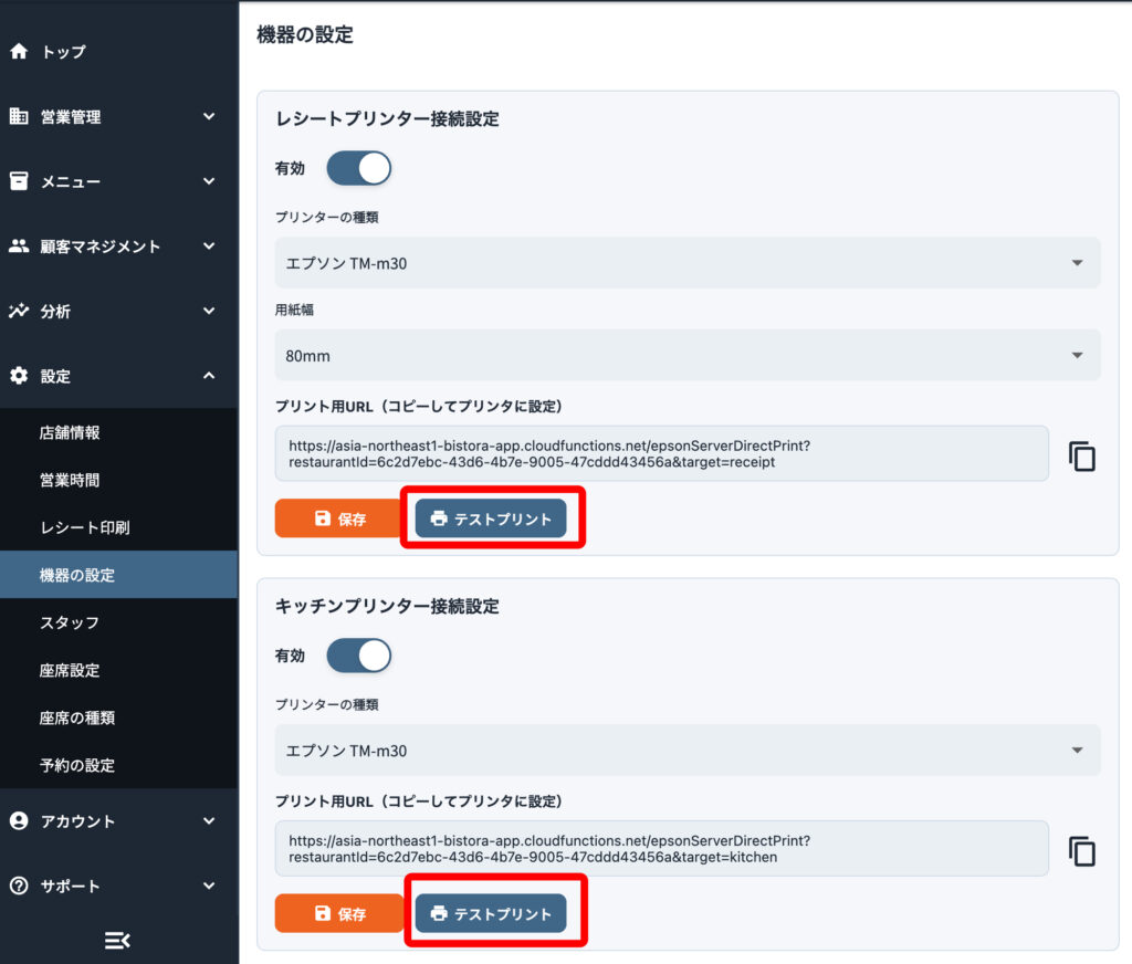 ここではレシートやキッチン伝票の印刷にエプソン TM-m30シリーズを使用する場合の設定方法をご案内します。